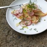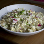 - Add potatoes, eggs, radishes and green onion to a boil