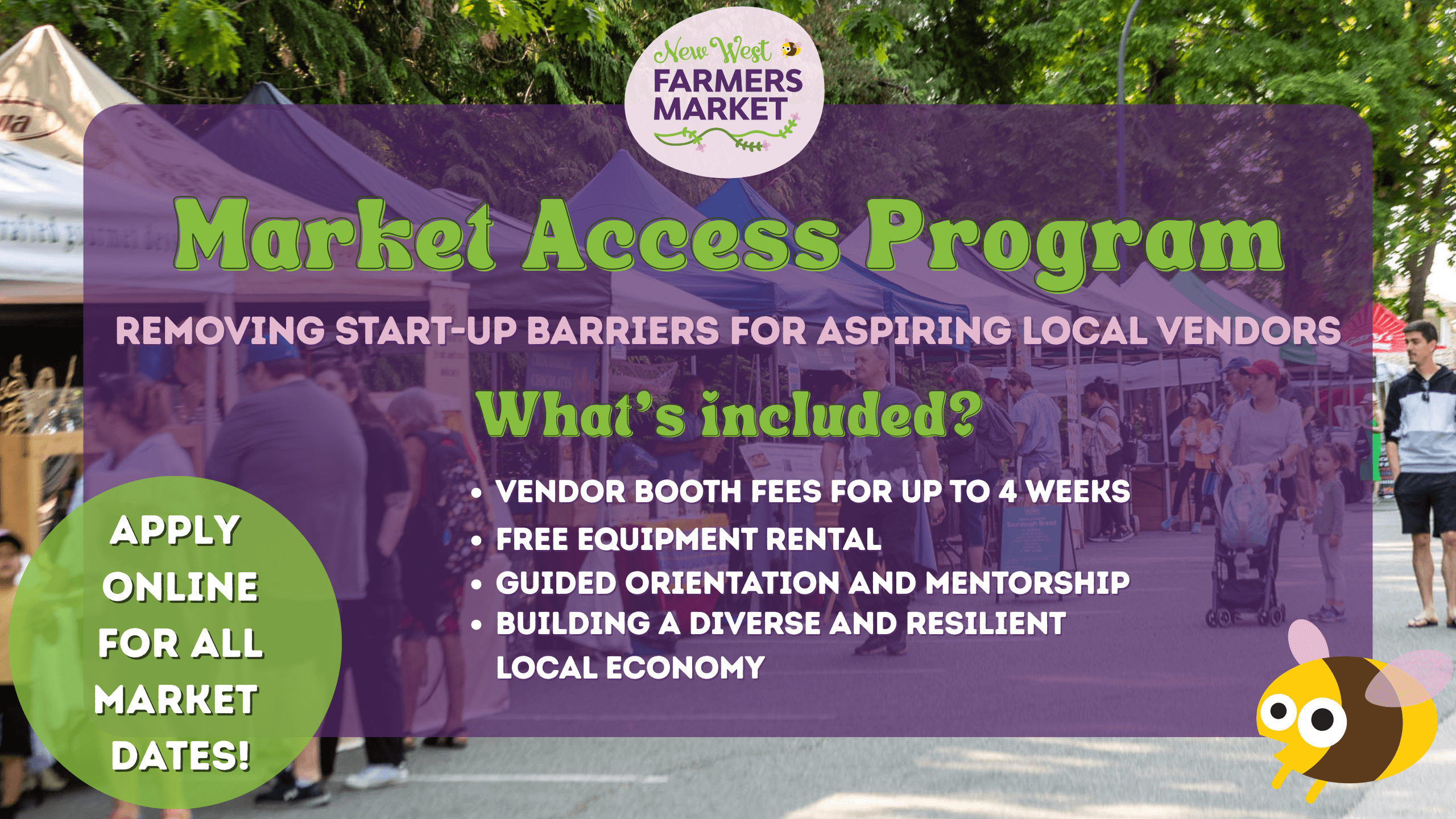 The NWFM is excited to expand our Market Access Program – to the WHOLE SEASON! Our Market Access Program provides FREE booth space, equipment, and mentorship to NEW vendors from underrepresented and marginalized backgrounds. It is aimed to remove the barriers that often prevent local entrepreneurs from launching at farmers markets for sustainable business development. Apply via our regular application and check “YES” when asked if you would like to be considered for this program. We have a limited number of stalls (2) allocated for this program per market date, and will provide a maximum of 4 complimentary booths (unless otherwise stated), so if you are not accepted for the program, or cannot be accepted for all dates, you are still welcome to join us as a regular vendor.